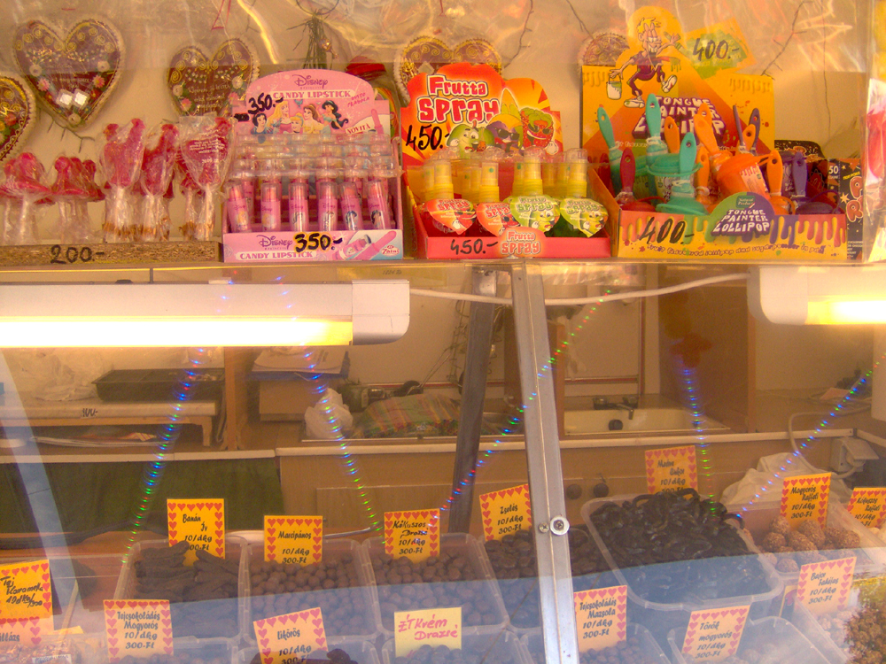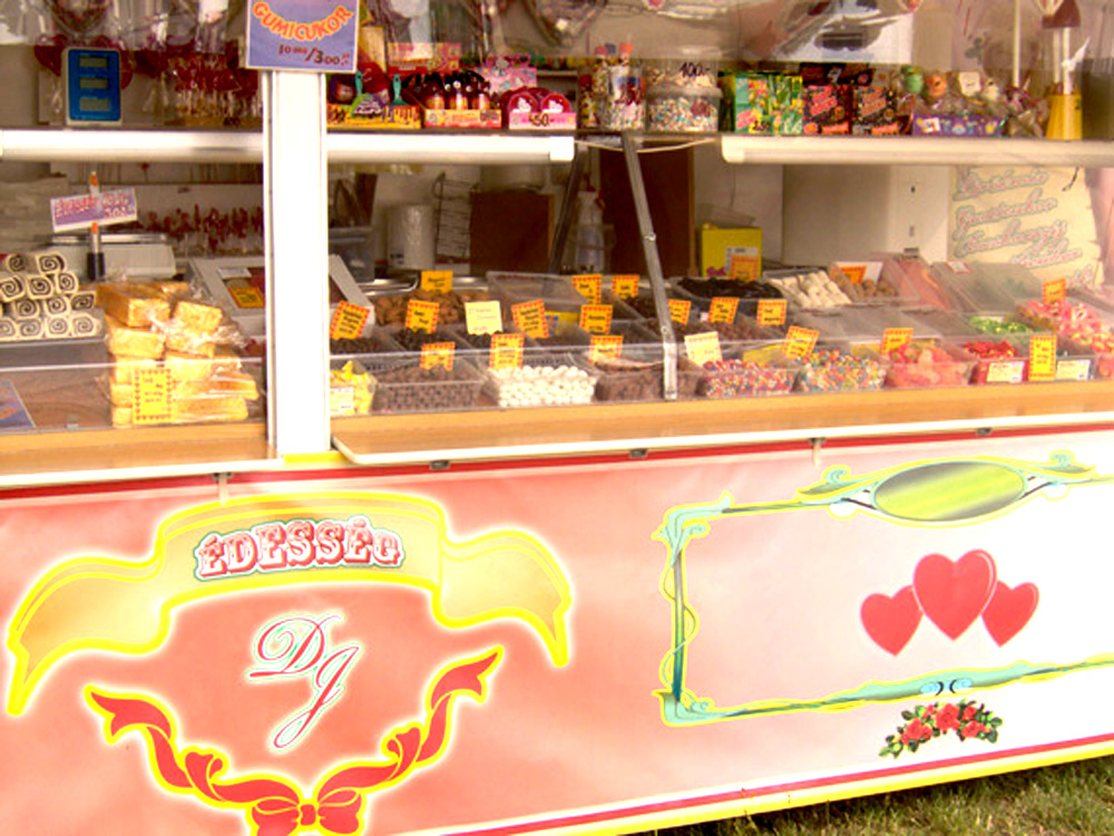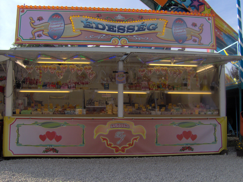 Édesség árusítás kétféle eszközzel történik, modern elárusitó kocsival illetve hagyományos sátorból.